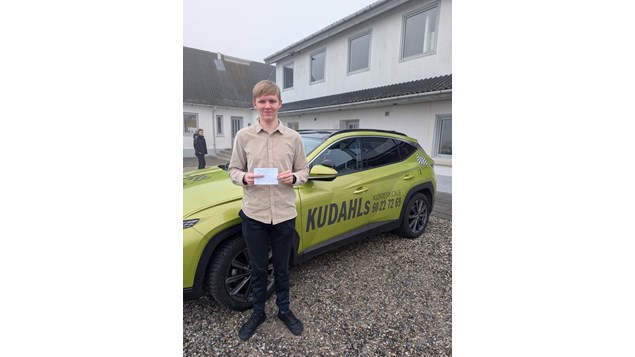 Kudahls Køreskole fejrer Anton, der har bestået sin køreprøve og fået kørekort. De ønsker ham tillykke og takker for valget af deres køreskole.