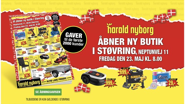 Harald Nyborg slår dørene op for en spritny butik i Støvring – og det skal fejres! Fredag den 23. maj inviterer vi til åbningsfest på vores nye adresse, hvor vi byder velkommen med masser af åbningstilbud og gode oplevelser.